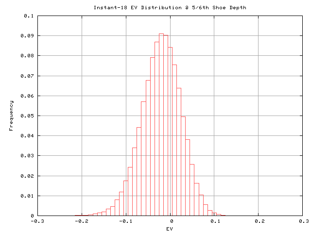 First, I looked at the distribution of EVs after 5 of 6 decks were dealt from the shoe: